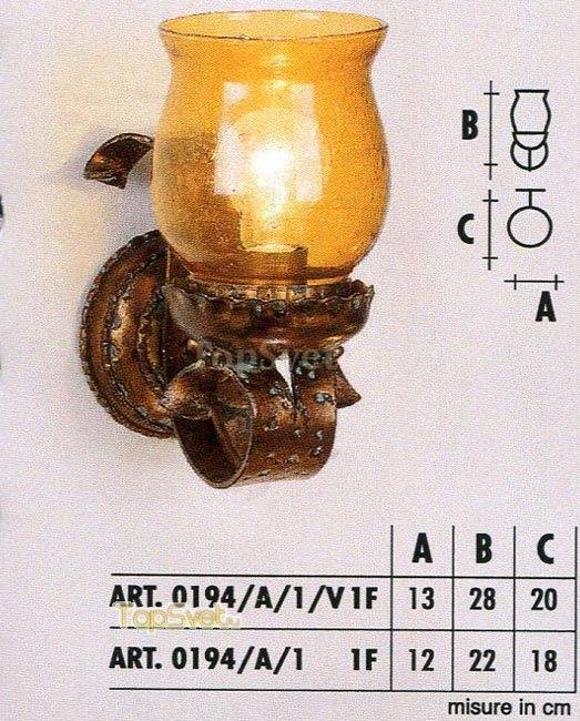 Бра 0194/A/1/V имеет хорошие размеры – ширина 130 мм., высота 280 мм., что позволяет ему хорошо подойти для помещения с подходящими габаритами и площадью освещения до 6 кв.метров.