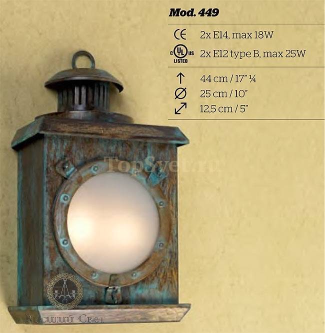 Бра 449-0625 имеет хорошие размеры – ширина 250 мм., высота 440 мм., что позволяет ему хорошо подойти для помещения с подходящими размерами и площадью освещения до 5 квадратных метров.