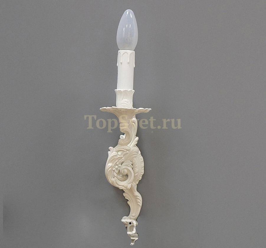 Корпус настенного светильника исполнен из прочного бронзу, цвет каркаса - белый, цвет плафона - белый, что придает этому светильнику изысканности.