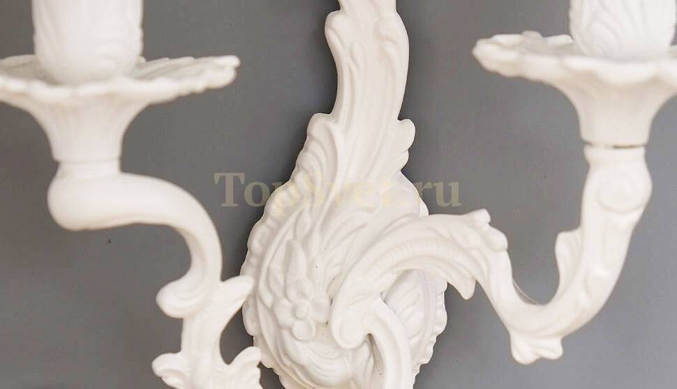 Корпус настенного светильника исполнен из прочного бронзу, цвет каркаса - белый, цвет плафона - белый, что придает этому светильнику изысканности.