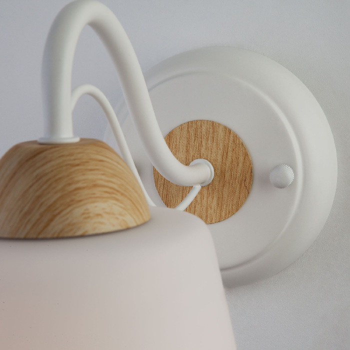Каркас бра выполнен из надёжного металл, цвет арматуры - белый, цвет плафона - белый, что придает этому светильнику изысканности.