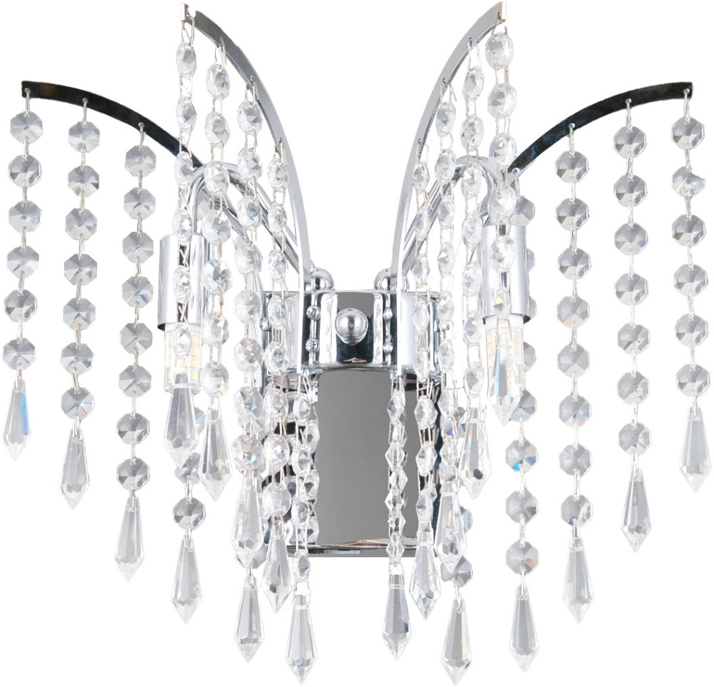 Корпус настенного светильника выполнен из надёжного металл, цвет каркаса - никель/Хром, цвет плафона - прозрачный, что придает этому светильнику благородности.