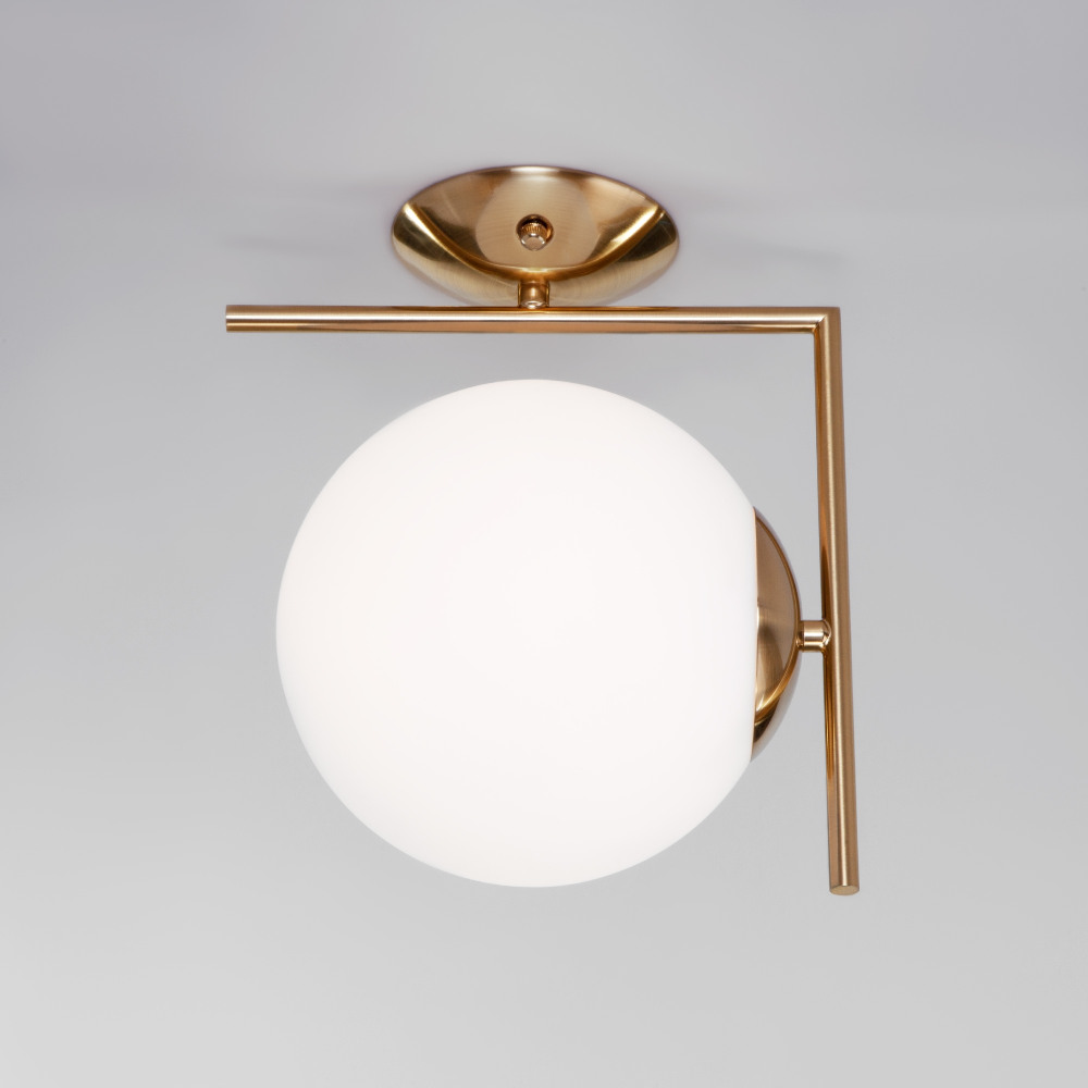Каркас бра исполнен из прочного металл, цвет арматуры - латунь, цвет плафона - белый, что придает этому светильнику благородности.