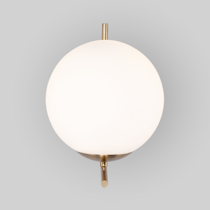 Каркас бра создан из надёжного металл, цвет арматуры - латунь, цвет плафона - белый, что придает этому светильнику благородности.