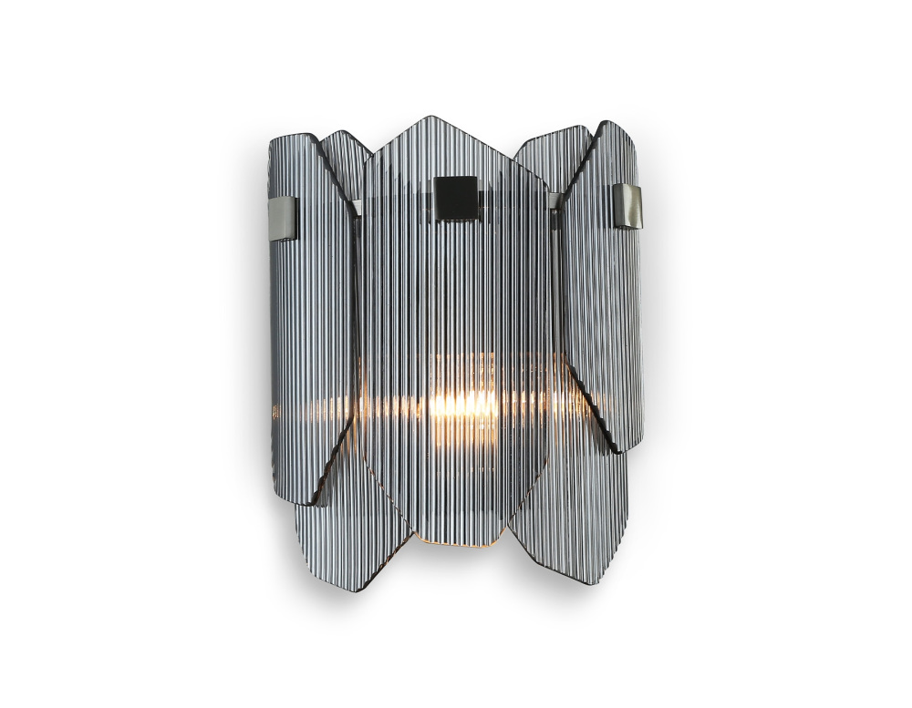 Корпус настенного светильника создан из прочного металл, цвет корпуса - чёрный, цвет плафона - дымчатый, что придает этому светильнику гармоничности.