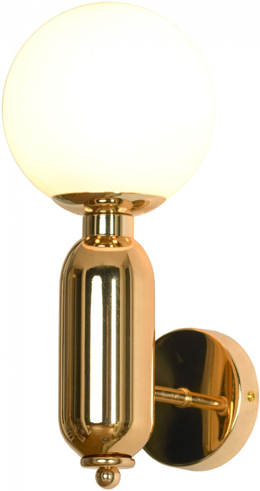 Корпус бра выполнен из качественного металл, цвет каркаса - золото, цвет плафона - белый, что придает этому светильнику изысканности.