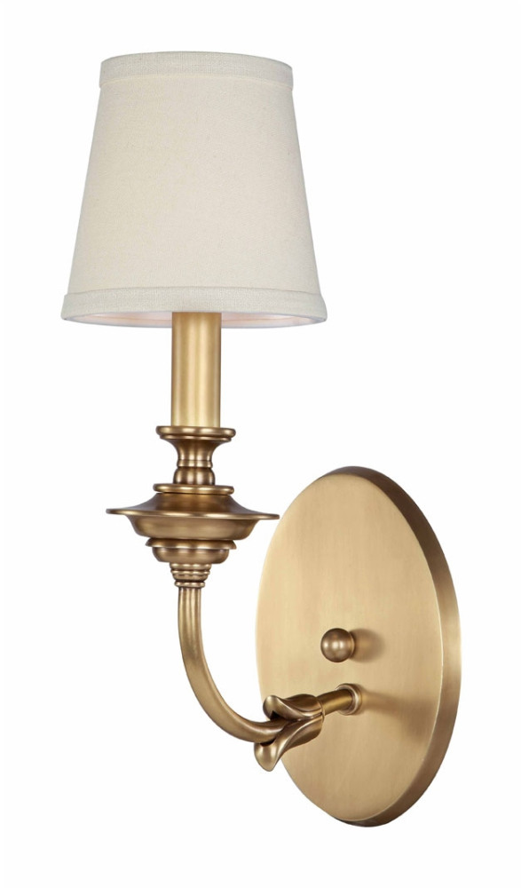 Каркас бра выполнен из качественного металл, цвет корпуса - латунь, цвет плафона - белый, что придает этому светильнику гармоничности.