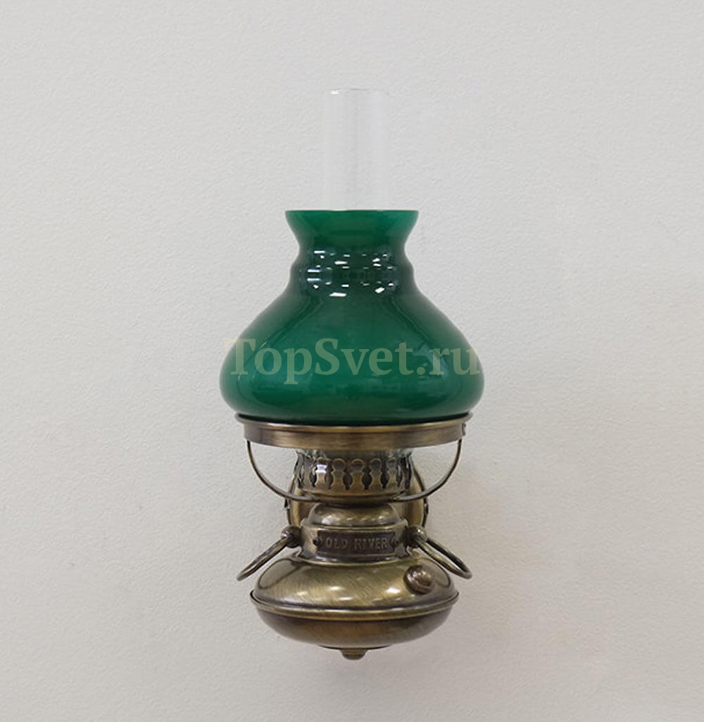 Корпус бра создан из прочного металл, цвет арматуры - бронза, цвет плафона - зелёный, что придает этому светильнику изысканности.