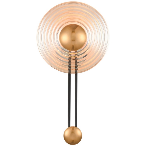 Корпус бра исполнен из прочного металл, цвет каркаса - золото, цвет плафона - янтарный, что придает этому светильнику гармоничности.