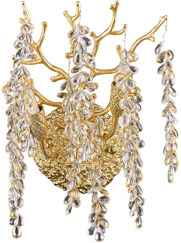 Корпус бра реализован из прочного металл, цвет корпуса - золото, цвет плафона - прозрачный, что придает этому светильнику изысканности.