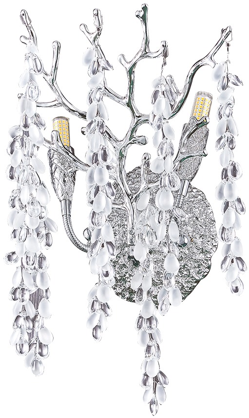 В этой модели настенного светильника установлены лампы в количестве 2 шт. с цоколем G9, общей мощностью 80 Вт.