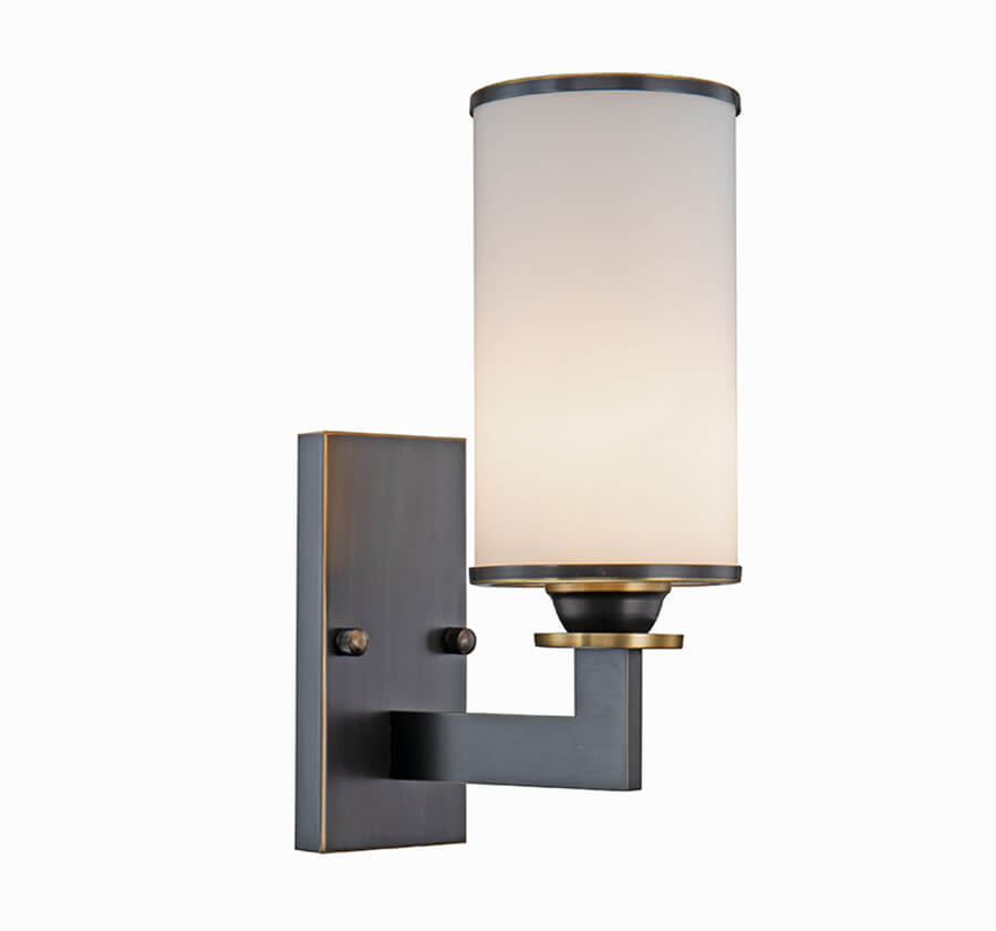 Корпус настенного светильника выполнен из качественного металл, цвет корпуса - коричневый, цвет плафона - белый, что придает этому светильнику изысканности.
