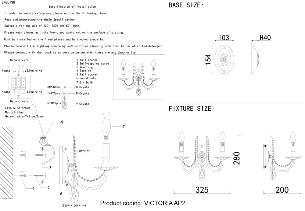 Бра VICTORIA AP2 GOLD/AMBER имеет прекрасные размеры – ширина мм., высота 280 мм., что позволяет ему отлично подойти для помещения с соответствующими размерами и площадью освещения до 8 квадратных метров.