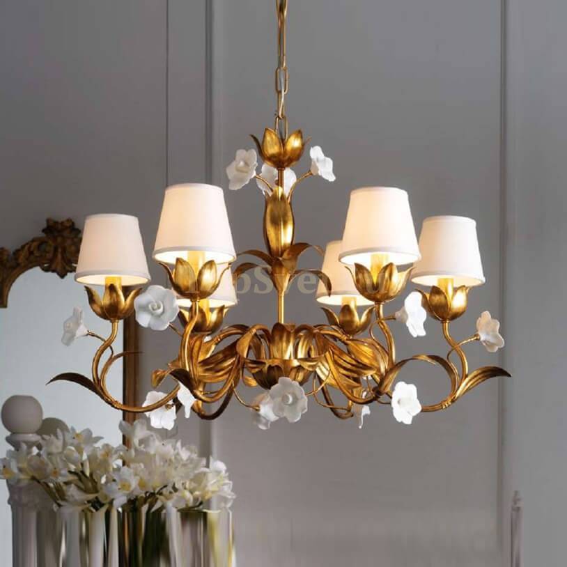 Эта модель подвесной люстры для спальни прекрасно сочетается с интерьерами, оформленными в стиле флористика, однако благодаря своему универсальному дизайну она также отлично будет смотреться и в других стилях, добавляя нотки шика, станет центральным акцентом в вашей комнате и принесет в неё дизайнерский шарм, тепло и изыск