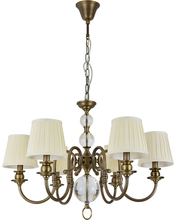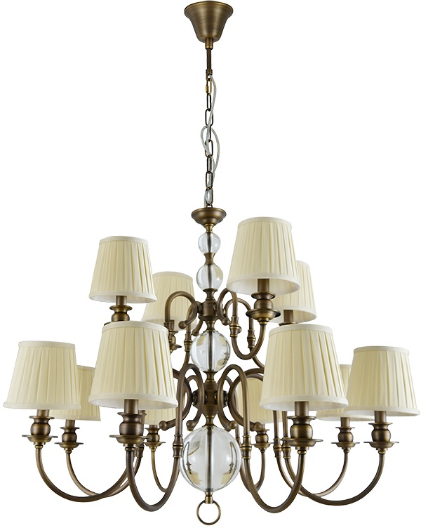 По конструкции это люстра на цепи: подвесной монтаж обеспечивает солидный визуальный «жест» и помогает правильно посадить светильник в пространстве с высокими потолками. Диаметр 1300 мм и высота 1200 мм подчёркивают масштаб, а патроны E14 позволяют укомплектовать люстру привычными лампами накаливания. При использовании 24 ламп по 60 W суммарная мощность достигает 1440 W — этого достаточно, чтобы уверенно осветить крупную зону без дополнительных светильников. Степень защиты IP20 соответствует эксплуатации в сухих жилых помещениях.