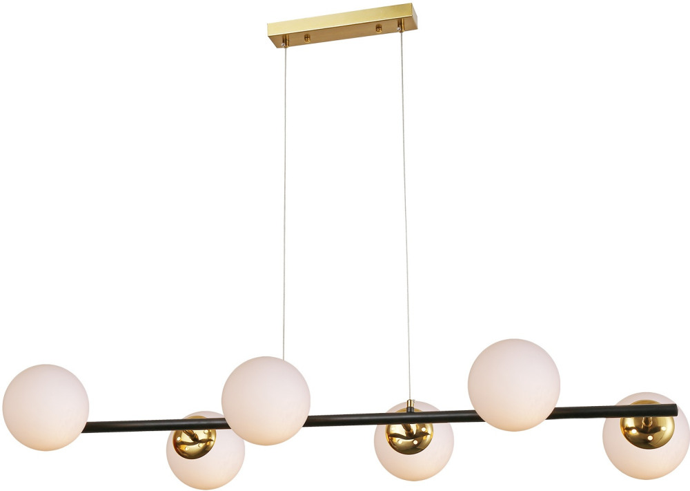 Корпус подвесной люстры создан из высококачественного металла, а золотой, чёрный цвет придаст вашему интерьеру элегантности. Плафон выполнен в белом цвете, что добавляет модели легкости, элегантности и завершенность образа.