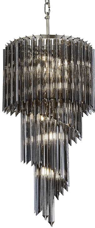 Корпус подвесной люстры выполнен из высококачественного металла, а никель/хромовый цвет придаст вашему интерьеру изысканности. Плафон выполнен в дымчатом цвете, что добавляет модели легкости, благородства и завершенность образа.