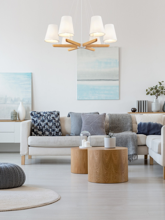 Для создания достаточного освещения в светильнике предусмотрены лампочки в количестве 6 шт. с цоколем E14 и общей мощностью 240 Вт., что обеспечивает мягкое освещение помещения площадью до 12 кв.м.