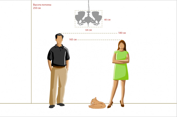 Размеры светильника: ширина 640 мм, высота 680 мм. - такие габариты позволяют люстре гармонично смотреться как в просторных, так и в небольших помещениях.