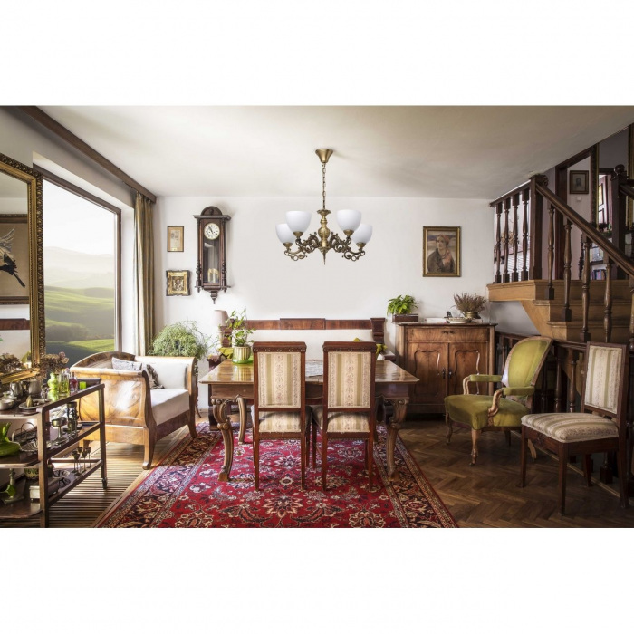 Эта модель подвесной люстры для да великолепно сочетается с интерьерами, оформленными в стиле классика, однако благодаря своему универсальному дизайну она также шикарно будет выглядеть и в других стилях, добавляя нотки изыска, станет визуальным акцентом в вашей квартире и принесет в неё неповторимую атмосферу, тепло и изысканность