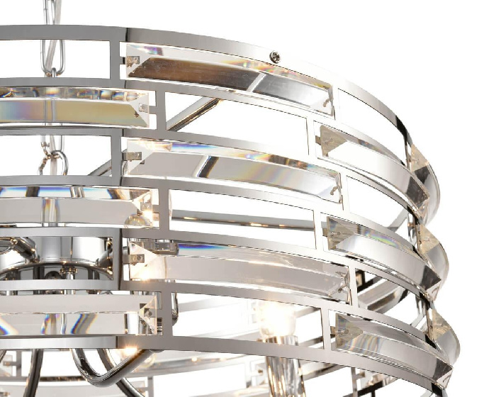 Эта модель подвесной люстры для да великолепно сочетается с интерьерами, оформленными в стиле арт Деко, однако благодаря своему универсальному дизайну она также прекрасно будет выглядеть и в других стилях, добавляя нотки шика, станет визуальным акцентом в вашей комнате и принесет в неё атмосферу уюта, тепло и изысканность