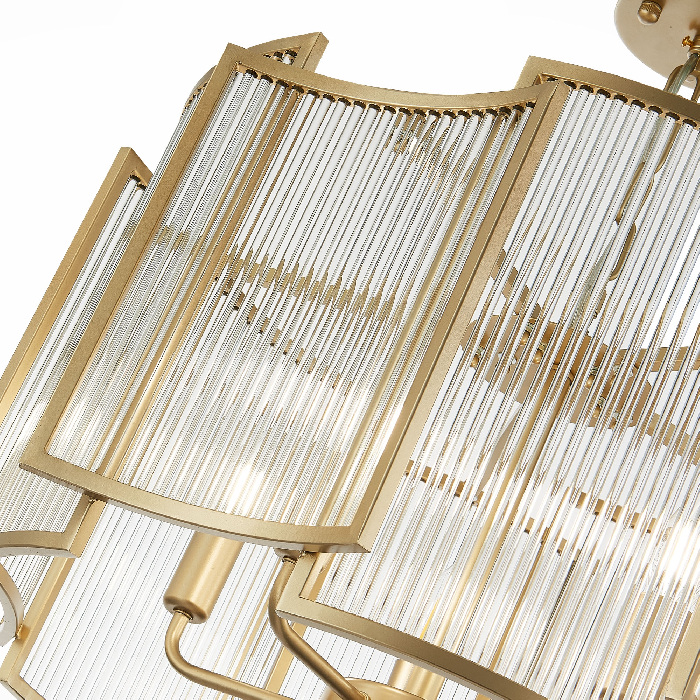 Корпус подвесной люстры сделан из прочного металла, а шампань цвет придаст вашему интерьеру изысканности. Плафон выполнен в прозрачном цвете, что добавляет модели легкости, элегантности и завершенность образа.