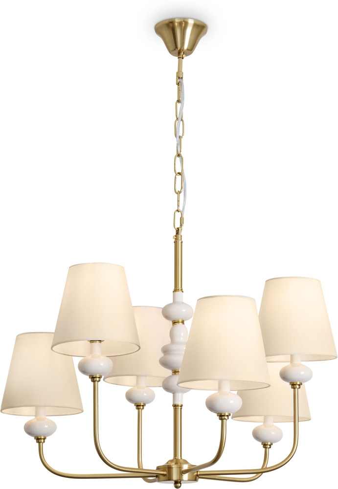 Каркас подвесной люстры исполнен из высококачественного металла, а латунный цвет добавит вашему интерьеру изысканности. Плафон выполнен в белом цвете, что добавляет модели легкости, элегантности и завершенность образа.