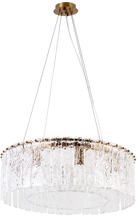 Каркас подвесной люстры выполнен из надежного металла, а латунный цвет добавит вашему интерьеру теплоты. Плафон выполнен в прозрачном цвете, что добавляет модели легкости, благородства и завершенность образа.