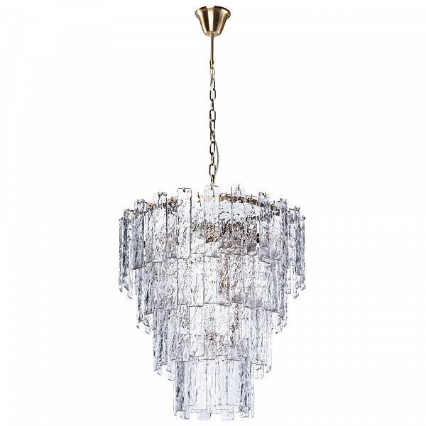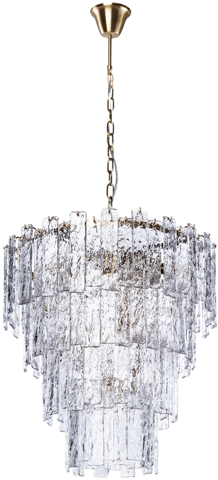 Каркас подвесной люстры выполнен из надежного металла, а латунный цвет добавит вашему интерьеру теплоты. Плафон выполнен в прозрачном цвете, что добавляет модели легкости, благородства и завершенность образа.