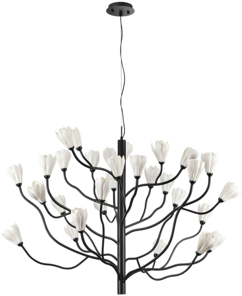 Эта модель подвесной люстры для гостиной, спальни превосходно сочетается с интерьерами, оформленными в стиле флористика, однако благодаря своему универсальному дизайну она также прекрасно будет выглядеть и в других стилях, добавляя нотки шика, станет главным акцентом в вашей комнате и принесет в неё особенный шарм, тепло и изысканность