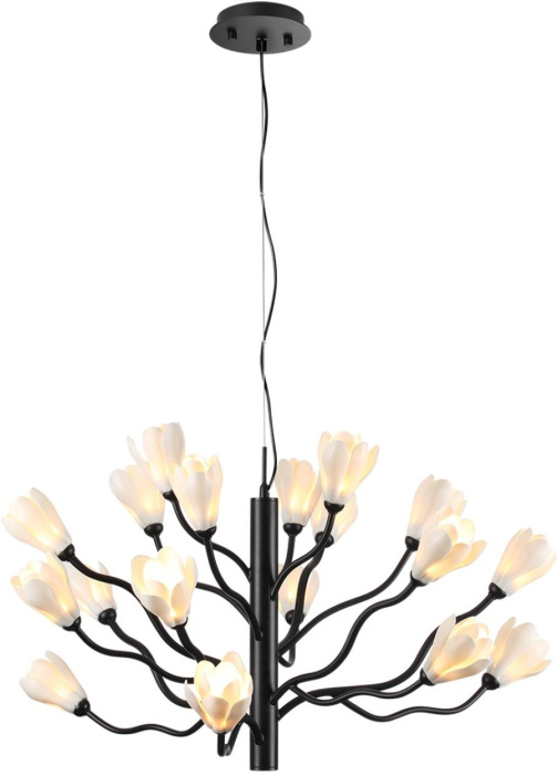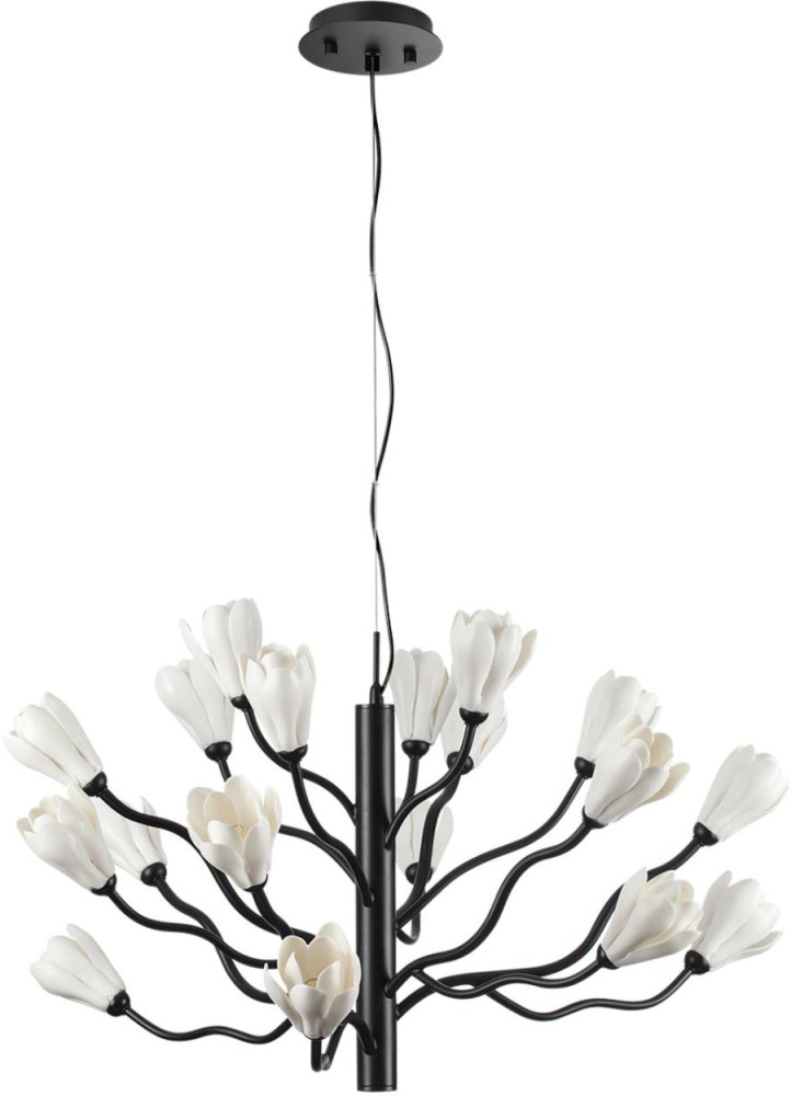 Эта модель подвесной люстры для гостиной, спальни превосходно сочетается с интерьерами, оформленными в стиле флористика, однако благодаря своему универсальному дизайну она также прекрасно будет выглядеть и в других стилях, добавляя нотки шика, станет главным акцентом в вашей комнате и принесет в неё особенный шарм, тепло и изысканность