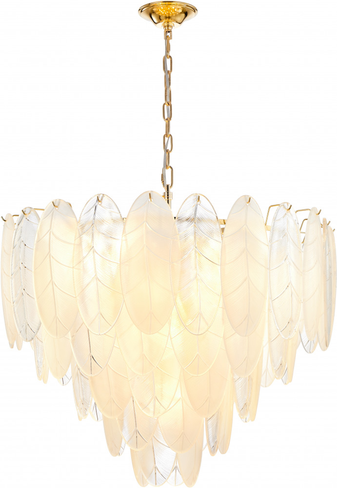 Корпус подвесной люстры сделан из надежного металла, а золотой цвет придаст вашему интерьеру изысканности. Плафон выполнен в прозрачном цвете, что добавляет модели легкости, благородства и завершенность образа.