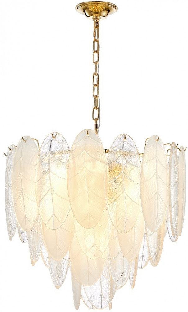 Корпус подвесной люстры сделан из надежного металла, а золотой цвет придаст вашему интерьеру изысканности. Плафон выполнен в прозрачном цвете, что добавляет модели легкости, благородства и завершенность образа.