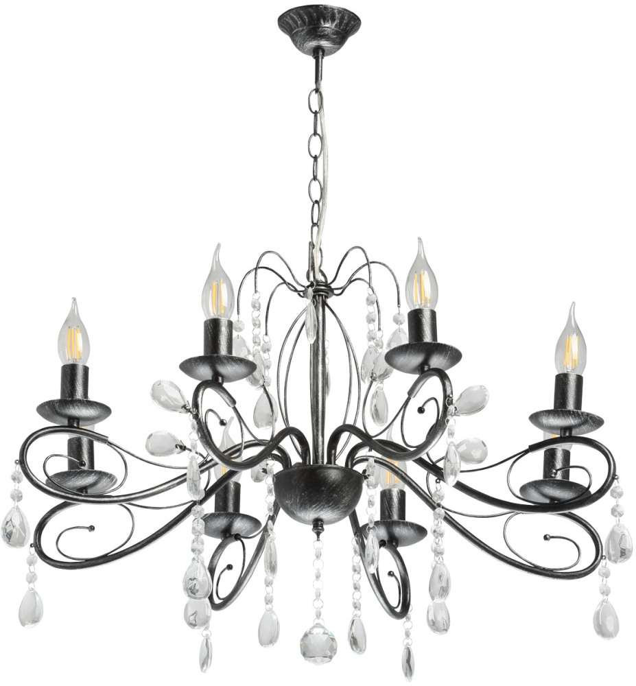 Для создания приятного освещения в светильнике предусмотрены лампочки в количестве 8 шт. с цоколем E14 и общей мощностью 480 Вт., что обеспечивает мягкое освещение помещения площадью до кв.м.