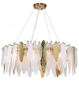 Корпус подвесной люстры выполнен из прочного металла, а золотой цвет придаст вашему интерьеру элегантности. Плафон выполнен в разноцветном цвете, что добавляет модели легкости, изысканности и завершенность образа.