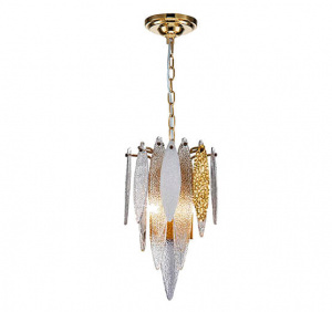 Корпус подвесной люстры выполнен из прочного металла, а золотой цвет придаст вашему интерьеру элегантности. Плафон выполнен в разноцветном цвете, что добавляет модели легкости, изысканности и завершенность образа.