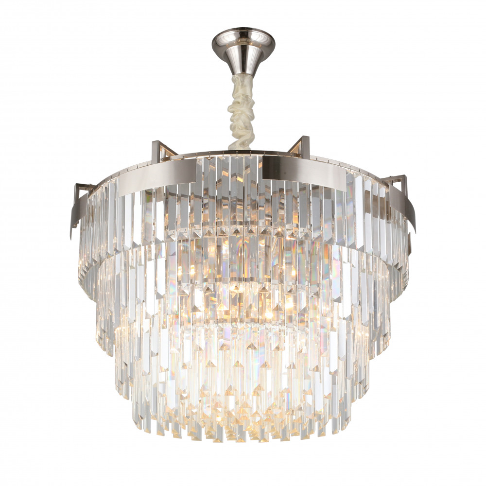Корпус подвесной люстры исполнен из надежного металла, а никель/хромовый цвет придаст вашему интерьеру теплоты. Плафон выполнен в прозрачном цвете, что добавляет модели легкости, элегантности и завершенность образа.