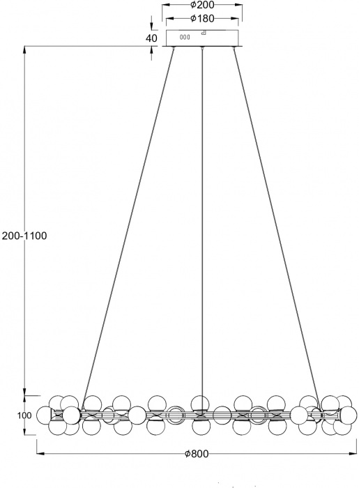 Размеры светильника: ширина 800 мм, высота 100 мм. - такие габариты позволяют люстре идеально смотреться как в просторных, так и в небольших помещениях.