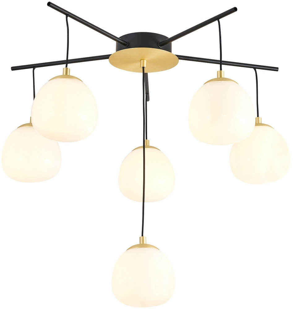 Для создания необходимого освещения в светильнике предусмотрены лампочки в количестве 6 шт. с цоколем G9 и общей мощностью 224 Вт., что обеспечивает приятное освещение помещения площадью до кв.м.