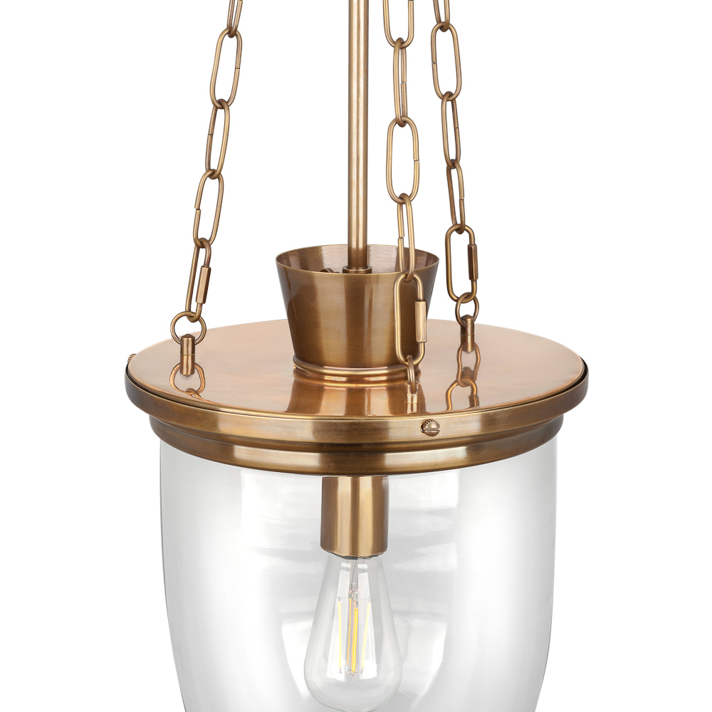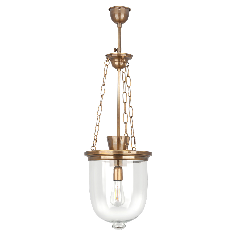 Корпус подвесной люстры выполнен из высококачественного латуни, а латунный цвет придаст вашему интерьеру глубины. Плафон выполнен в прозрачном, латунном цвете, что добавляет модели легкости, изысканности и завершенность образа.