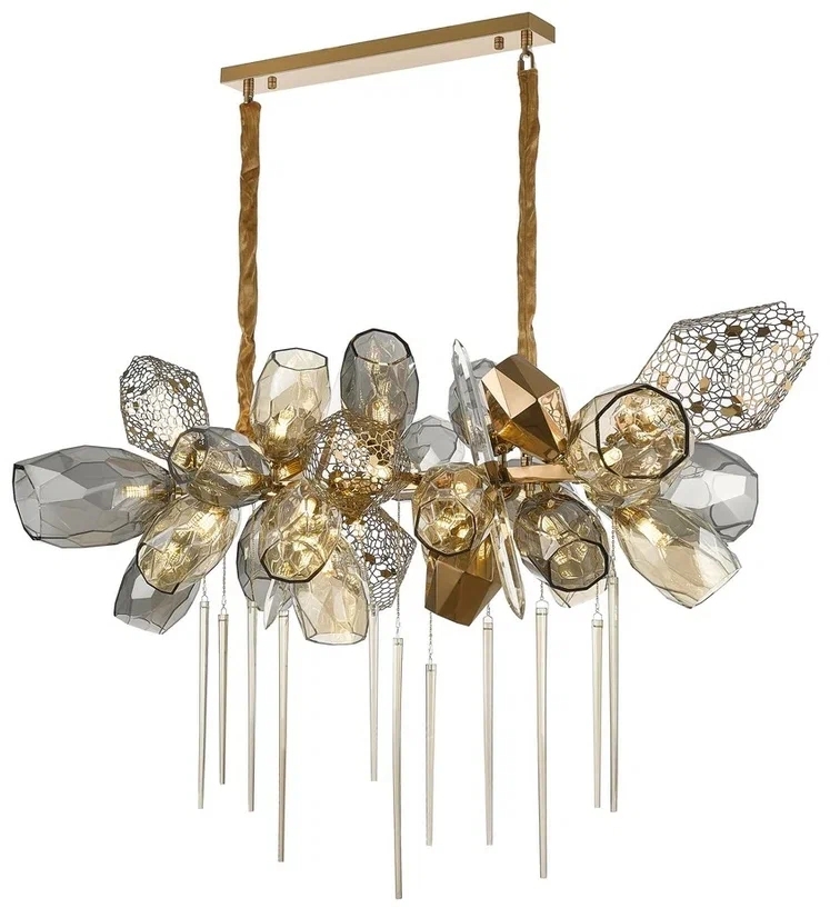 Эта модель подвесной люстры для да идеально сочетается с интерьерами, оформленными в стиле модерн, однако благодаря своему универсальному дизайну она также прекрасно будет выглядеть и в других стилях, добавляя нотки изыска, станет фокусным акцентом в вашей квартире и принесет в неё атмосферу уюта, тепло и изысканность