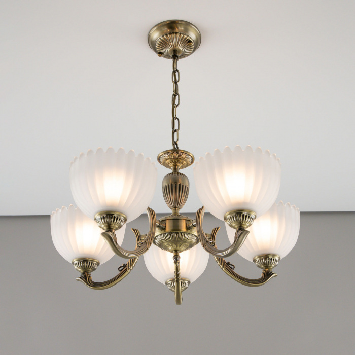 Люстра рассчитана на пять ламп с цоколем E27 мощностью до 75 Вт каждая, что позволяет осветить помещение площадью до 17 м². При использовании светодиодных ламп можно добиться еще большей яркости при меньшем энергопотреблении.