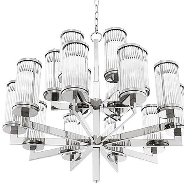 Эта подвесная люстра создана для эффектного освещения просторных гостиных и зон с высоким потолком: мощность до 640 W и покрытие до 30 м² позволяют легко организовать базовый свет без дополнительных светильников. Прозрачные цилиндрические плафоны подчеркивают стиль Модерн, а серебряная фурнитура добавляет графики и «воздуха» композиции. В сегменте светильники для общего освещения она ощущается столь же органично, как классическая люстра на цепи или лаконичная люстра на штанге — визуально легкая, но по-настоящему светлая.