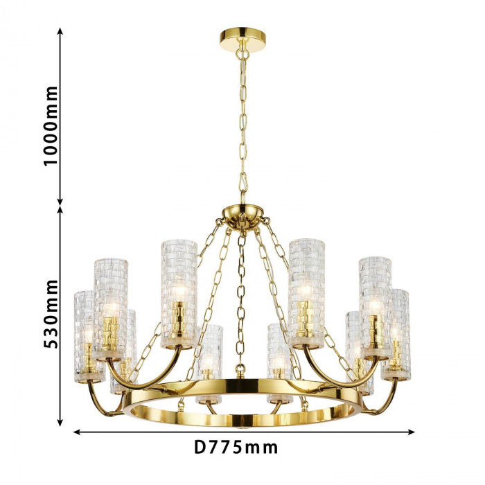 Размеры светильника: ширина 770 мм, высота мм. - такие габариты позволяют люстре идеально смотреться как в просторных, так и в небольших помещениях.