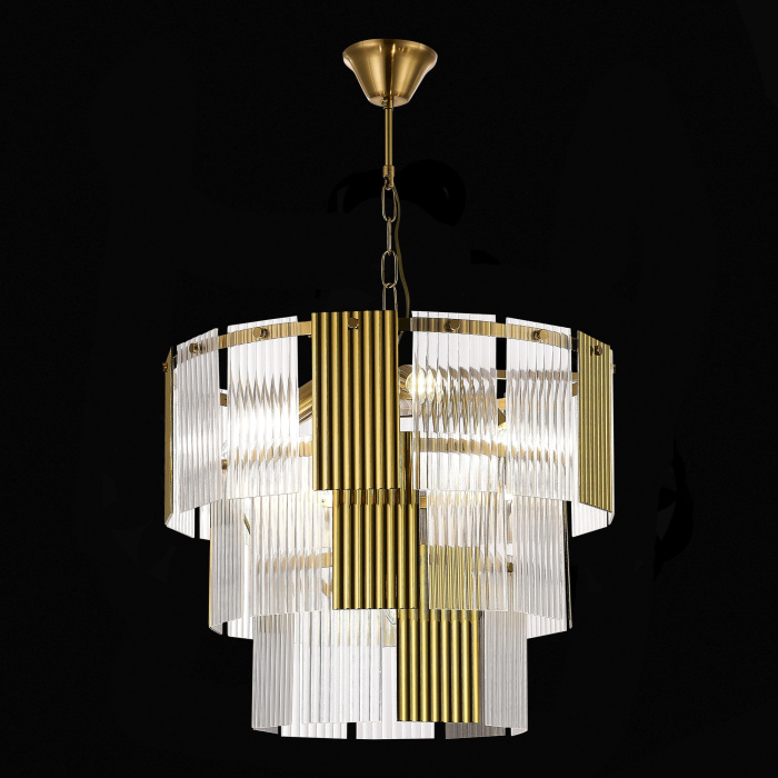 Каркас подвесной люстры сделан из высококачественного металла, а латунный цвет придаст вашему интерьеру глубины. Плафон выполнен в прозрачном цвете, что добавляет модели легкости, благородства и завершенность образа.