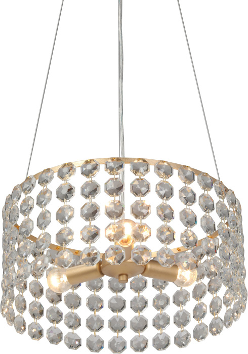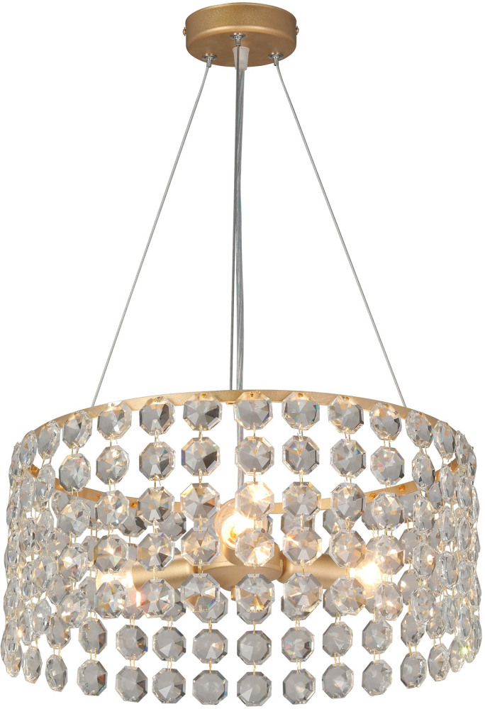 Корпус подвесной люстры исполнен из надежного металла, а золотой цвет придаст вашему интерьеру теплоты. Плафон выполнен в прозрачном цвете, что добавляет модели легкости, элегантности и завершенность образа.