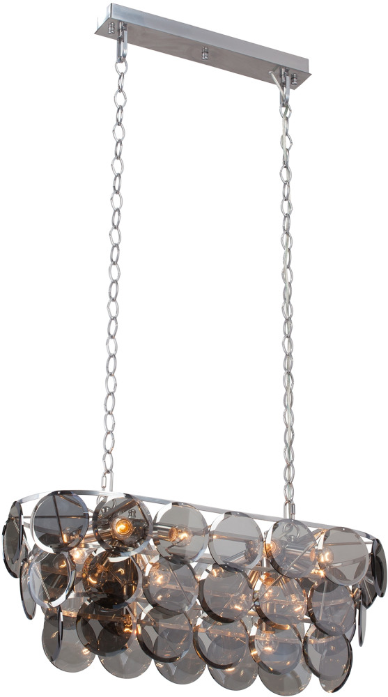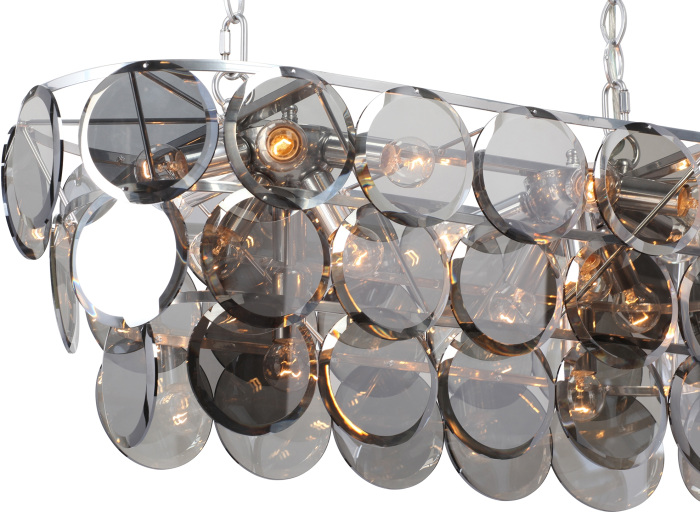 Каркас подвесной люстры исполнен из прочного металла, а никель/хромовый цвет добавит вашему интерьеру теплоты. Плафон выполнен в дымчатом цвете, что добавляет модели легкости, благородства и завершенность образа.