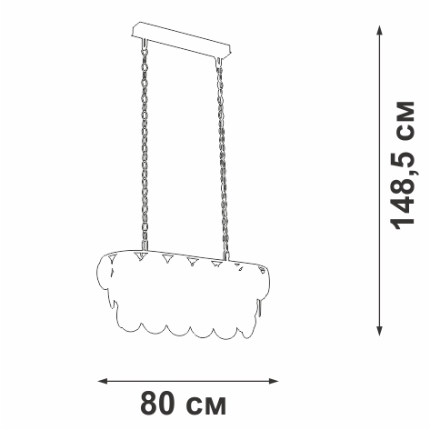 Размеры светильника: ширина мм, высота 1485 мм. - такие габариты позволяют люстре гармонично смотреться как в просторных, так и в небольших помещениях.