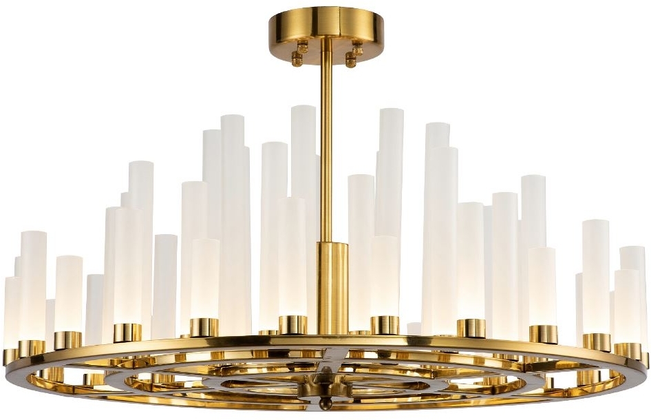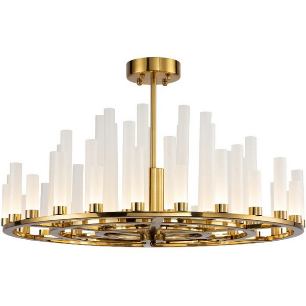 Корпус подвесной люстры исполнен из высококачественного металла, а латунный цвет придаст вашему интерьеру теплоты. Плафон выполнен в белом цвете, что добавляет модели легкости, элегантности и завершенность образа.