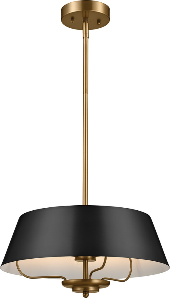 Корпус подвесной люстры создан из надежного металла, а латунный цвет добавит вашему интерьеру теплоты. Плафон выполнен в чёрном цвете, что добавляет модели легкости, элегантности и завершенность образа.